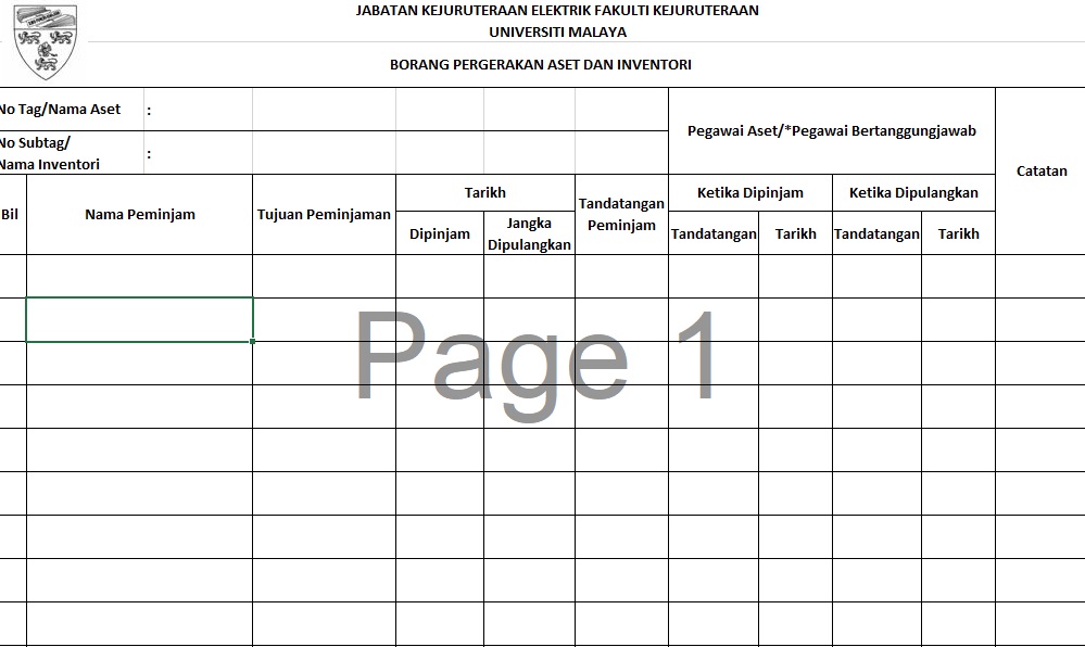 This is the form to move any asset out of Universiti Malaya High Voltage Lab (UMHVL). The move can be due to borrowing equipment, servicing/repairing/calibrating equipment or transferring equipment to other location. Users who wish to use move any asset out of UMHVL must first obtain permission from Professor Ir. Dr. Hazlee Azil Illias (email: h.illias@um.edu.my). |