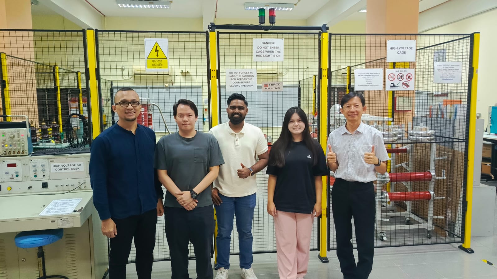 KUALA LUMPUR, 7 November 2025 – An academic staff and 3 students from University of Wollongong (UOW) Malaysia visited the Universiti Malaya High Voltage Laboratory (UMHVL) at the Department of Electrical Engineering, Faculty of Engineering, Universiti Malaya on 6 November 2025. The visit was part of their educational activities. During the visit, a member of UMHVL, Mr. Ciptian Weried Priananda, explained the lab safety requirements and then demonstrated impulse voltage generation to the visitors to gain a better insight into the lab.
